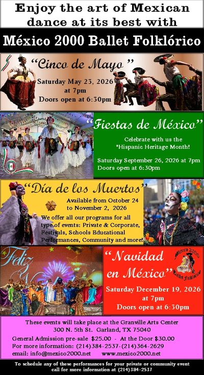 Mexico 2000 produces four different thematic shows each year for the students of our school and, likewise, features the official Mexico 2000 Ballet Folklorico Advance Dance Company.